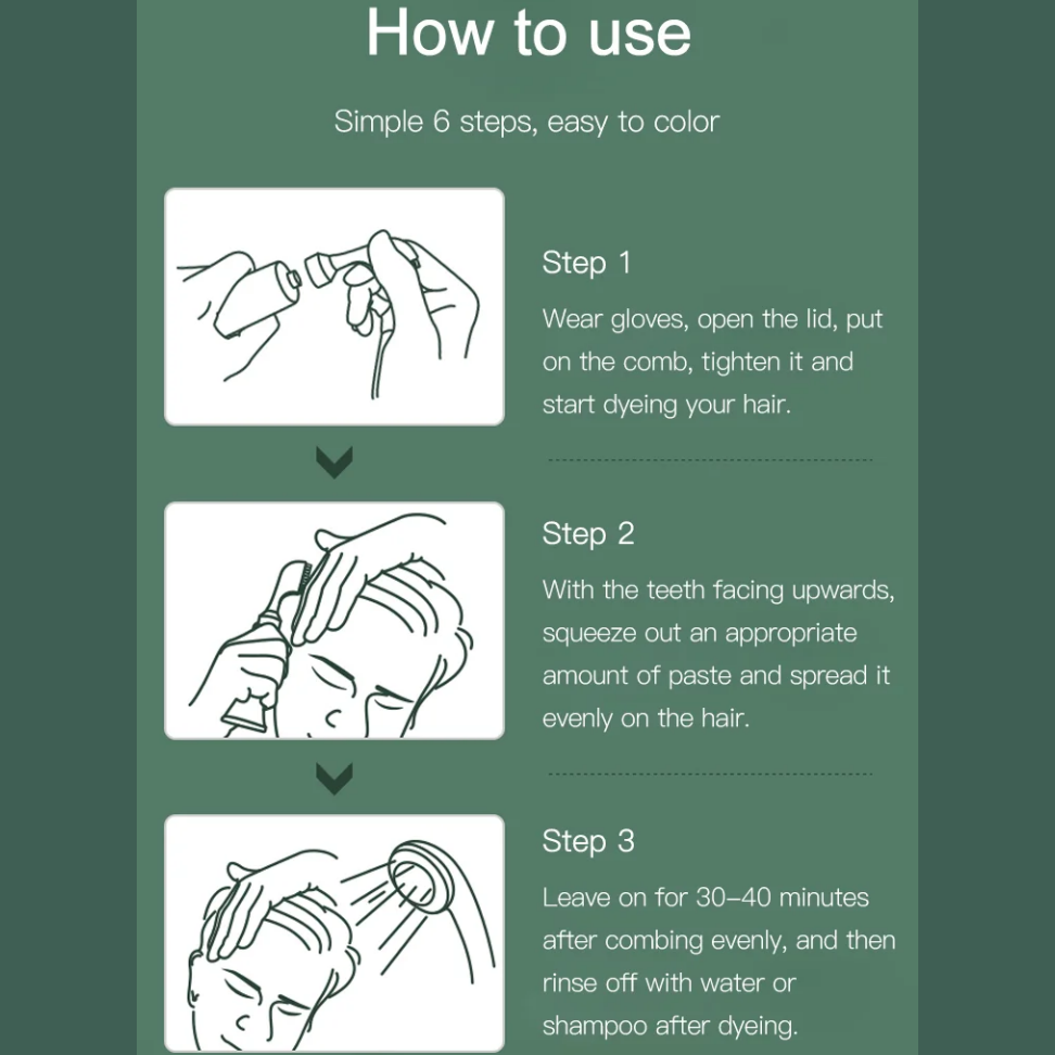 What sets our hair dyeing comb apart is its unique formulation enriched with nourishing fruit extracts. These extracts provide essential vitamins and antioxidants that help maintain the health and vitality of your hair during the coloring process. They also contribute to a pleasant fragrance, unlike the harsh chemical odors associated with many hair dyes. The fruit extracts in our comb work to hydrate and protect your hair, leaving it feeling soft, silky, and healthy. You can enjoy the benefits of vibrant hair color without compromising the well-being of your locks.
